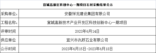宣城高新區(qū)科創(chuàng)中心一期項(xiàng)目石材采購(gòu)結(jié)果公示
